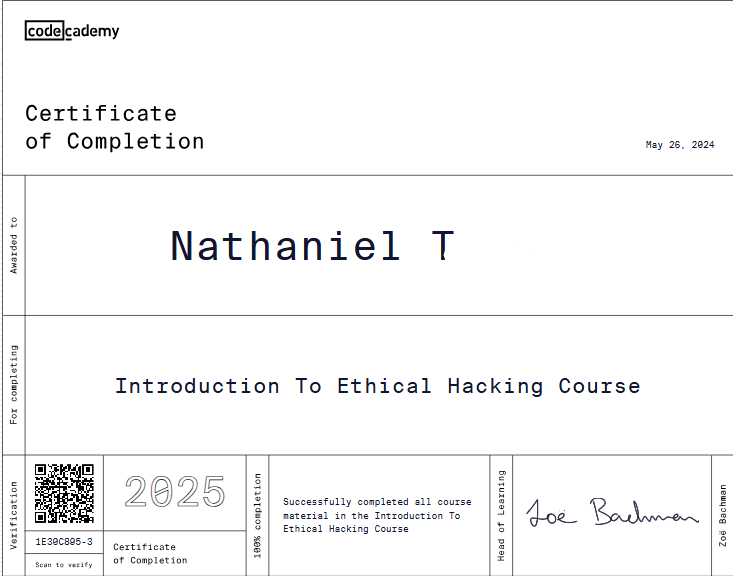Cours sur le Hack Ethique Portfolio2025-01-30T08:30:17+00:00 Portefeuille Description mai 1, 2024 Identifiant de la certification: 1E30C895-3